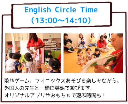 テーマに合わせた歌やゲームで英語を楽しむ「English Circle Time」と週替わりで様々なアクティビティを行う「Creative Lab」