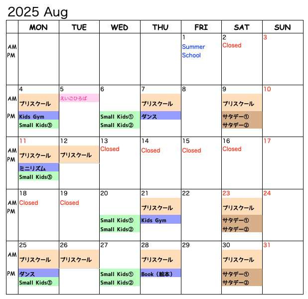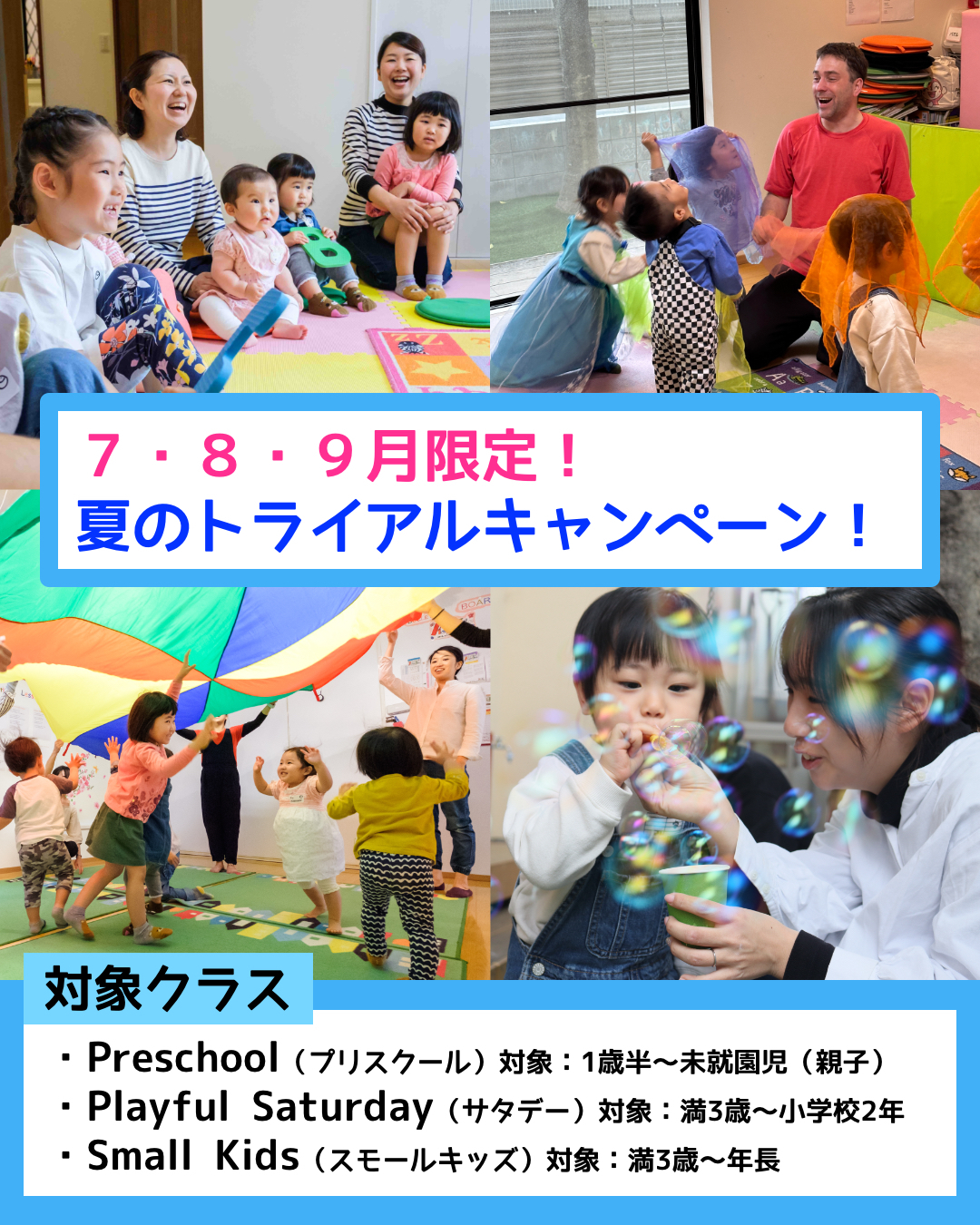 期間中(7〜9月)のにこにこタイム(平日午後からのSpecial Class)にも無料でご参加OKです!