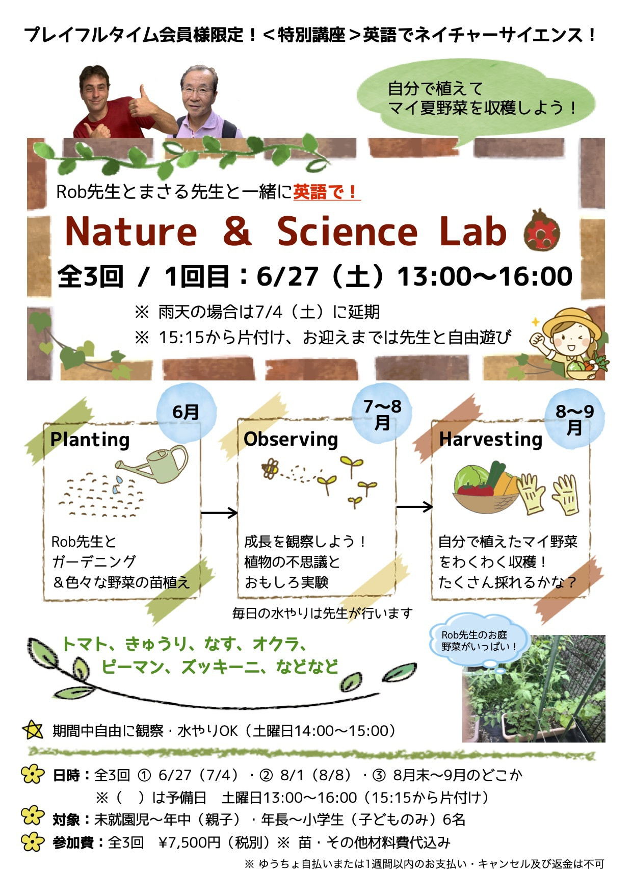 プレイフルタイム会員様限定!特別講座『英語でネイチャーサイエンス!(全3回)』