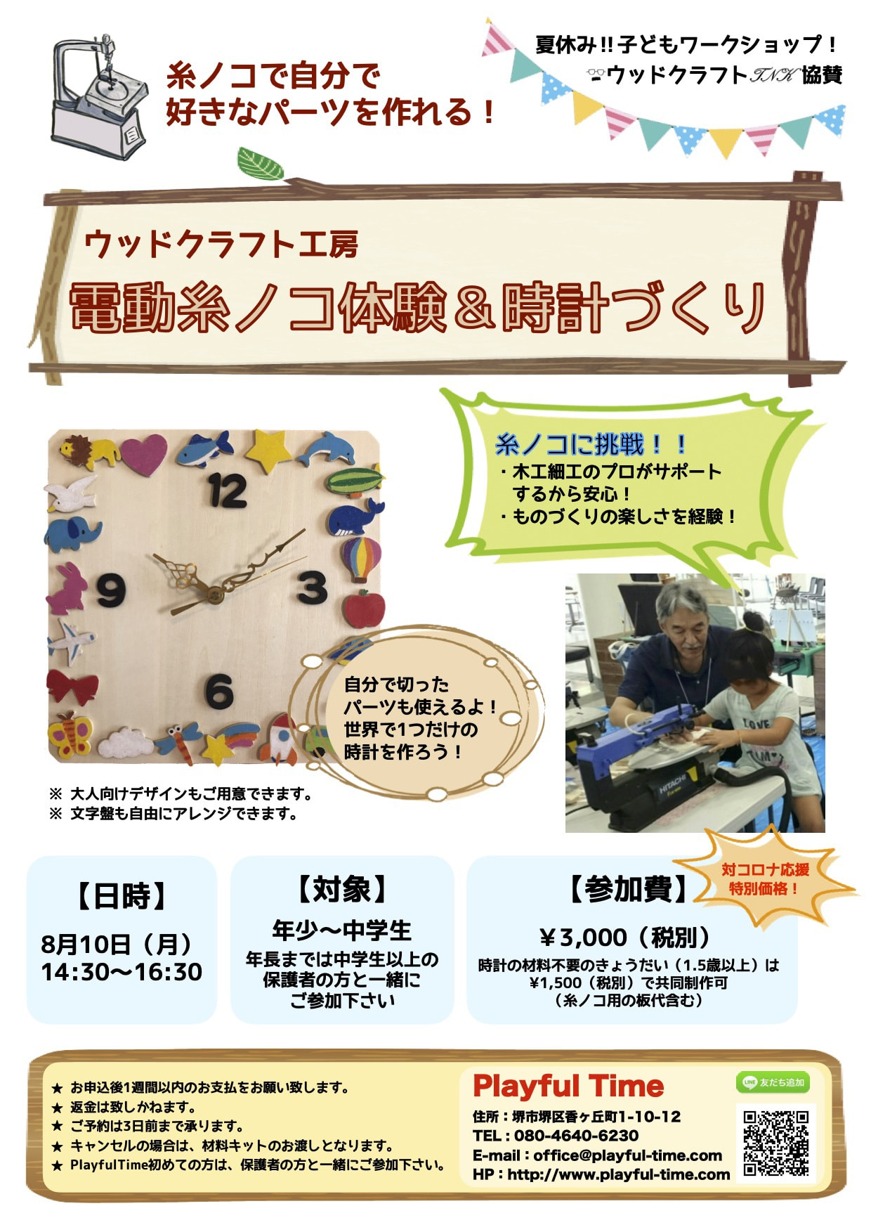 「電動糸ノコ体験&時計づくり!」