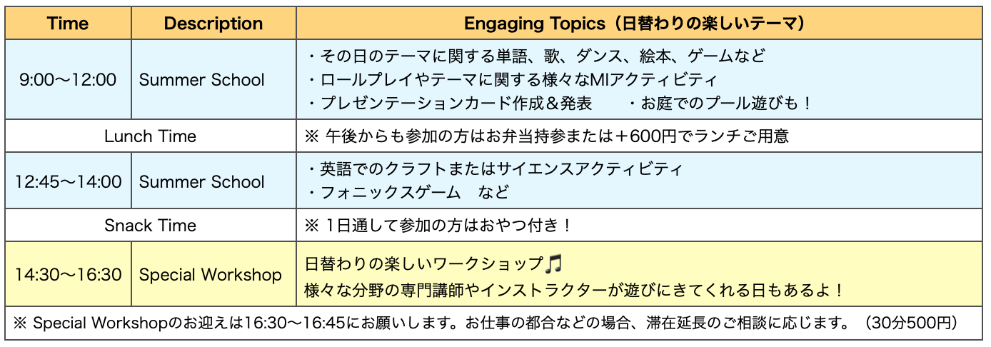 幼稚園〜小学生対象サマースクール開催!