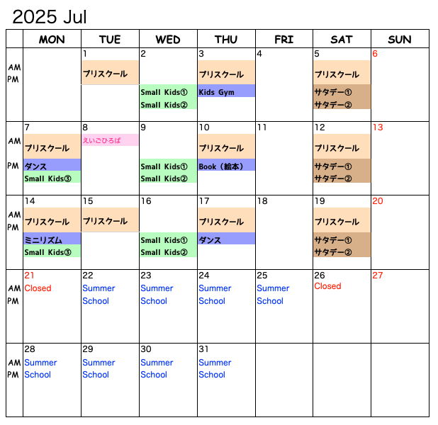 期間中(7〜9月)のにこにこタイム(平日午後からのSpecial Class)にも無料でご参加OKです!